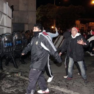 BUENOS AIRES, ARGENTINA (26/JUN/2011).- Los siempre violentos "barrabravas" del futbol argentino destruyeron hoy parte del Estadio Monumental de River Plate y se enfrentaron con piedras y palos luego del histórico descenso del club a la segunda división.