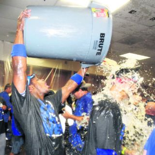 Los jugadores de los Dodgers empaparon a todos con champaña en el clubhouse y otros tantos corrieron a celebrarlo con un chapuzón en la alberca del Chase Field.