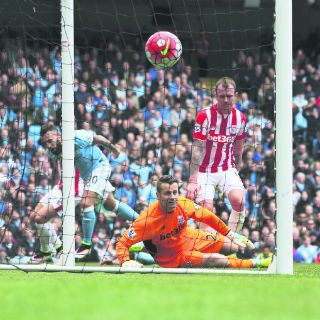 MANCHESTER, INGLATERRA (24/ABR/2016).- El Manchester City venció ayer al Stoke City 4-0, en partido de la jornada 35 de la Premier League, por lo que ahora se enfocará en el duelo del martes frente al Real Madrid, en la Champions League.