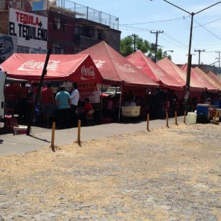 GUADALAJARA, JALISCO (20/ABR/2013).- Huele a carne asada, tacos, tortillas y demás antojitos, “la dieta T” para vivir el Clásico Tapatío, Atlas-Chivas. El ambiente es de fiesta, los más aficionados llegaron desde las tres de la tarde para alcanzar a comer e hidratarse, “el calor está canijo”, dice Alfonso quien llegó a un local por unas botellas de agua.