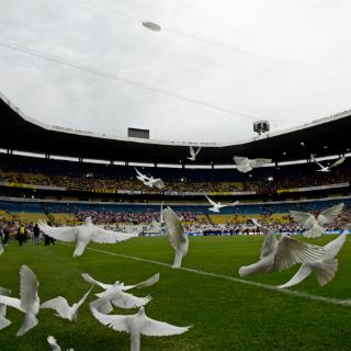 "Las aficiones de los equipos nos unimos para mandar al mundo un mensaje de paz, todos atravesamos momentos difíciles, y el partido de hoy nos une un mismo objetivo, disfrutar del partido, crear un mosaico de paz y sobre todo ofrecer una sonrisa al digno rival, la paz comienza con una sonrisa", fue lo que señaló el sonido local, al instante que los niños lanzaron a todo lo alto, palomas blancas, simbolizando la paz.