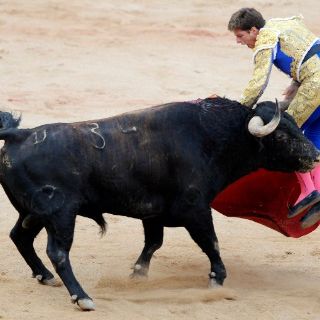 PAMPLONA, ESPAÑA (12/JUL/2010).- El torero español Julián López "El Juli", considerado como uno de los mejores diestros de la temporada, resultó herido entre las piernas el lunes en Pamplona (norte), luego de ser cogido por un toro en una de las corridas de las fiestas de San Fermín.