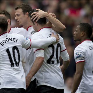 El equipo local se adelantó pronto (minuto dos) mediante el atacante Theo Walcott y el United empató al filo del descanso (44) con un penal convertido por el holandés Robin van Persie.