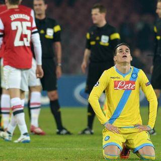 NÁPOLES, ITALIA (11/DIC/2013).- El Nápoles de Rafa Benítez venció por 2-0 al Arsenal inglés, pero no le valió para seguir en la Liga de Campeones, porque necesitaba vencer por tres tantos de ventaja si el