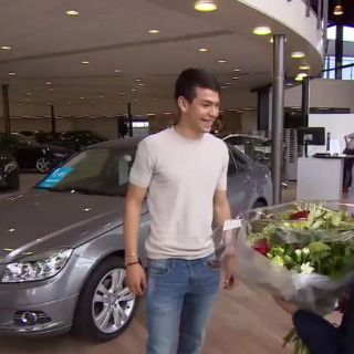 Un Mercedez, es la nueva adquisición del seleccionado mexicano, además de vestirse muy a la moda europea para recoger su nuevo "juguete".