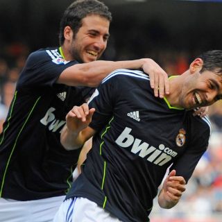 VALENCIA, ESPAÑA (23/ABR/2011).- El Real Madrid ganó 6-3 al Valencia como visitante en Mestalla, este sábado en la 33ª jornada de la Liga española de fútbol, en la que el delantero argentino Gonzalo 'Pipita' Higuaín firmó un 'triplete', mientras que el centrocampista brasileño Kaká anotó dos dianas.