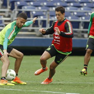 La práctica inició con Jesús Corona en el marco; Aguilar, Márquez, Y. Corona y Torres Nilo; Reyes, Herrera y Layún en el medio campo; Aquino, Jiménez y “Tecatito”.