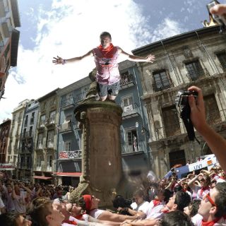 Las fiestas de San Fermín o Sanfermines son una celebración en honor a San Fermín que tiene lugar anualmente en Pamplona, teniendo como una de las actividades más famosas el encierro, un recorrido de 849 metros delante de los toros y que culmina en la Plaza de Toros.