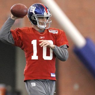 El mariscal de campo de los Gigantes entrena poco antes del partido