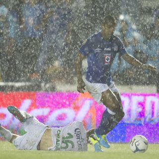MÉXICO, D.F. (30/JUL/2013).- Bajo un tremendo aguacero, que provocó la suspensión del encuentro por unos minutos, Cruz Azul continúa sin levantar en este arranque de campeonato y apenas empató 1-1 con Jaguares de Chiapas, en duelo que abrió la fecha tres de la Liga MX del futbol mexicano en el estadio Azul.