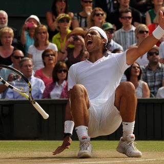 LONDRES, INGLATERRA (05/JUL/2010).- Carrera hacia su contrincante, voltereta y de cabeza al césped. Eso fue lo que hizo el español Rafael Nadal al conseguir este domingo el punto de la victoria en la final de Wimbledon ante el checo Tomas Berdych.