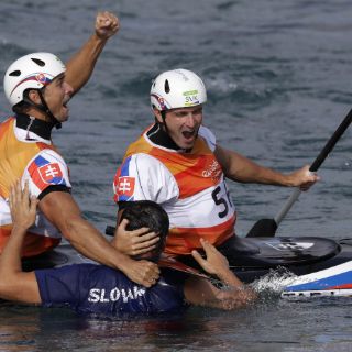 RÍO DE JANEIRO, BRASIL (11/AGO/2016).- Los primos eslovacos Ladislav y Petr Skantar se coronaron este jueves en el Whitewater Stadium del Parque Radical de Deodoro nuevos campeones olímpicos de C2 de kayak.