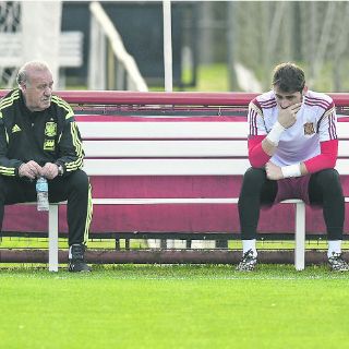 GUADALAJARA, JALISCO (15/JUN/2014).- Con mucho que decir. Y mucho más que pensar. Así fue la charla que sostuvo Vicente del Bosque con Iker Casillas, a 24 horas de que la escuadra española sufrió una