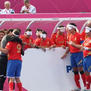 LONDRES, INGLATERRA (31/AGO/2012).- La selección española del futbol sala para ciegos, Futbol-5, que nació como deporte paralímpico en 2004, busca la gloria en Londres 2012 y tiene grandes esperanzas con su estrella Antonio Martín Gaitán.