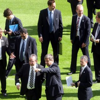 El ministro del Interior, Alfredo Pérez Rubalcaba, y el secretario de Estado para el Deporte, Jaime Lissavetzky, demostrarán el respaldo del Gobierno a la FIFA, que también recibirá la bienvenida del seleccionador nacional, Vicente del Bosque, el director técnico de la Federación Española, Fernando Hierro, el entrenador del Real Madrid, José Mourinho, y el campeón del Mundo, Raúl Albiol.