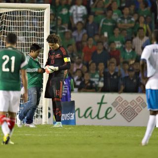 Se jugaba el minuto 82 del partido, cuando de repente un joven se metió a la cancha, la cual cruzó casi en su totalidad para que el arquero mexicano le firmara su playera de la Selección.
