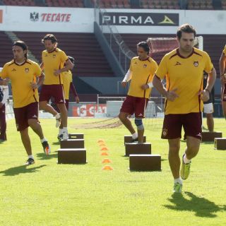 ZAPOPAN, JALISCO (26/ABR/2012).- La petición fue clara al momento de reunirse antes del arranque del entrenamiento: el técnico Héctor Hugo Eugui pedía a sus jugadores disfrutar de la última práctica de Estudiantes Tecos como equipo de Primera División y así se hizo.
