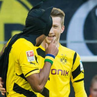 Aubameyang y Reus se pusieron las máscaras de Batman y Robin para celebrar el primer gol del gabonés (78) en la victoria el sábado pasado en el derbi del Ruhr ante el Schalke (3-0).