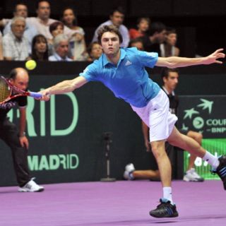CLERMONT-FERRAND, FRANCIA (11/JUL/2010).- El francés Gilles Simon venció el domingo al español Nicolas Almagro 7-6 (4), 7-6 (7) para extender a 4-0 la ventaja de Francia sobre España en cuartos de final de la Copa Davis.