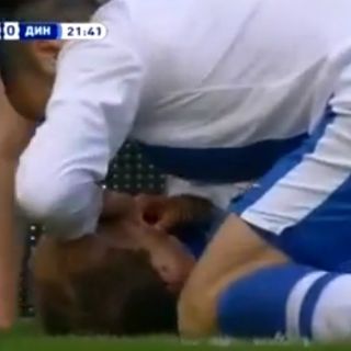En pleno juego, el futbolista Oleg Gusev, del Dynamo de Kiev fue gravemente golpeado por la rodilla del portero de su equipo rival al intentar ganar el balón justo al lado de la portería.