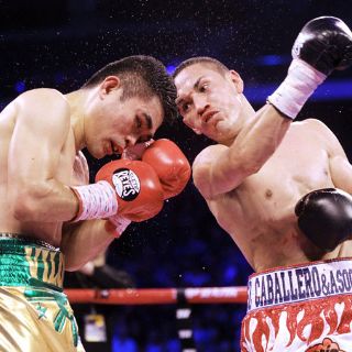 MACAO, CHINA (06/ABR/2013).- El mexicano Juan Francisco "Gallito" Estrada se impuso al hawaiano Brian Viloria por decisión dividida y le arrebató los títulos mundiales mosca AMB-OMB, en la Cotai Arena del casino Venetian.