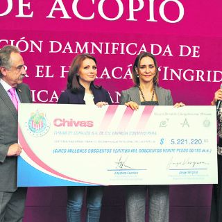 La presidente ejecutiva de grupo Omnilife-Angelíssima-Chivas, Angélica Fuentes, entregó a la primera dama de México Angélica Rivera, el donativo correspondiente a la taquilla del Clásico tapatío, que ayudará en algo a los damnificados por los fenómenos naturales “Ingrid” y “Manuel”, que dejó grandes estragos en gran parte del territorio mexicano. Como testigo de honor, estuvo el presidente de la Liga, Decio de María, quien estuvo atento a la entrega del cheque por cinco millones 221 mil 220 pesos. Fuentes, en el campo Marte agradeció a toda la afición que colaboró asistiendo al Omnilife, el pasado domingo.