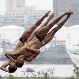 Los mexicanos ejecutaron el salto de cuatro y media vueltas adentro agrupado (409C) de 4.1 grado de dificultad y el más alto existente en el mundo.