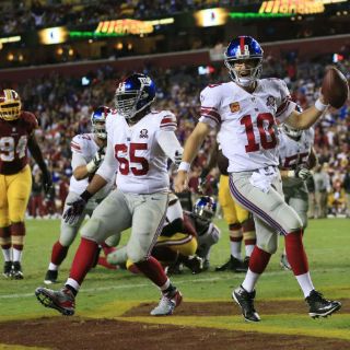 LANDOVER, ESTADOS UNIDOS (26/SEP/2014).- Eli Manning tuvo una magnifica noche en Washington, en la que con cuatro pases de anotación guió a los Gigantes de Nueva York vencer de forma holgada a los