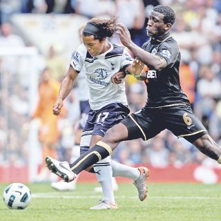 LONDRES, INGLATERRA (19/ENE/2011).- El delantero mexicano Giovani dos Santos, del conjunto de Tottenham, se hizo notar con doblete en el partido amistoso donde los Spurs golearon 9-2 a sus vecinos del Queen Park Rangers.