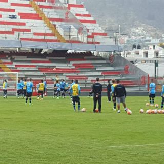 TOLUCA, EDOMEX (16/FEB/2016).- El equipo brasileño del Gremio de Porto Alegre reconoció la cancha del estadio Nemesio Díez, donde este miércoles enfrentará a