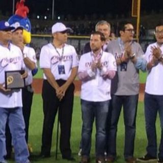 Aparece el receptor Gabriel Gutiérrez para abrazar a quien también fue su ídolo. Pero eso no fue todo, en el jardín izquierdo se proyectaba un video con los mejores momentos del "Ídolo de Etchohuaquila", tanto en Charros, como en las Grandes Ligas.