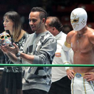 Lewis Hamilton a Místico sobre el mismo ring de la Arena México.