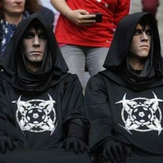 Vestidos con túnicas negras y pintados con maquillaje oscuro se presentaron en Stamford Bridge