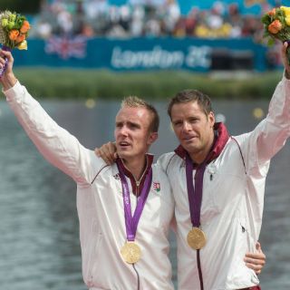 LONDRES, INGLATERRA (08/AGO/2012).- La dupla de húngaros compuesta por Rudolf Dombi y Roland Kokeny se adjudicó la medalla de oro de la prueba de Kayak K-2 varonil a mil metros en los Juegos Olímpicos de Londres 2012, tras superar a Portugal y Alemania.