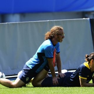 COPENHAGUE, DINAMARCA (13/JUN/2012).- El delantero sueco Zlatan Ibrahimovic entrenó al margen del resto de sus compañeros de la selección por un problema en el muslo izquierdo, aunque su participación para el segundo encuentro de la Eurocopa parece asegurado.