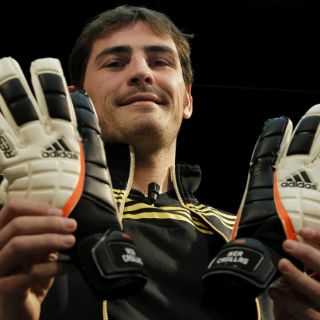 MADRID, ESPAÑA (12/ENE/2012).- Iker Casillas, capitán del Real Madrid, presentó nuevos guantes y botas en su estreno como imagen de Adidas en la tienda oficial de la marca en el estadio Santiago Bernabéu.