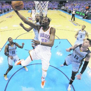 OKLAHOMA, ESTADOS UNIDOS.- Los astros Kevin Durant y Russell Westbrook guiaron anoche al Thunder de Oklahoma City para vencer a los Grizzlies de Memphis 120-109 y avanzaron a las semifinales de la Conferencia Oeste de la NBA.