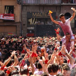 El casco viejo de la capital navarra se llenó de miles personas vestidas de blanco con pañuelos rojos alzados, que vistos desde lo alto de los edificios parecen una marea que espera el chupinazo para soltar la energía con la que se reciben estas fiestas.