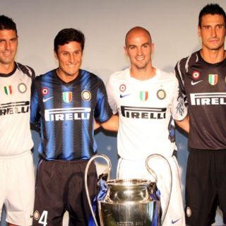 MIILÁN, ITALIA (16/JUL/2010).- En una sencilla presentación con la Copa de Campeones de Europa como testigo el Inter de Milán dio a canocer los uniformes con los que disputará los torneos 2010-2011en la Serie A italiana.