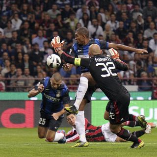 MILÁN, ITALIA (07/OCT/2012).- Un gol del argentino Walter Samuel, en remate de cabeza, dio el triunfo foráneo al Inter sobre el Milán (0-1), en una nueva versión del derbi milanés, mientras que el Nápoles se impuso en casa al Udinese (2-1), lo que le permite igualar con el líder Juventus Turín.