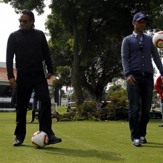 El capitán estudiantil y el defensa Rafa Márquez se encontraron ayer en el Club Santa Anita, donde promocionaron el encuentro de hoy entre Estudiantes Tecos y Red Bull.