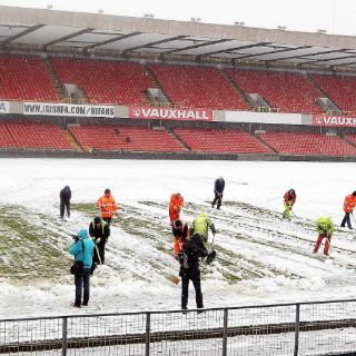 BELFAST, IRLANDA DEL NORTE (22/MAR/2013).- La intensa nevada que se dejó sentir en esta ciudad de Irlanda del Norte impidió que se realizara el partido entre la selección de futbol local y su similar de Rusia, que se disputará el sábado, si el clima lo permite.