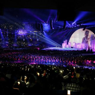 Los atletas y medallistas de los 41 países, que presenciaban de pie el espectáculo, se convertían por momentos en parte del escenario con los multicolores rayos láser.