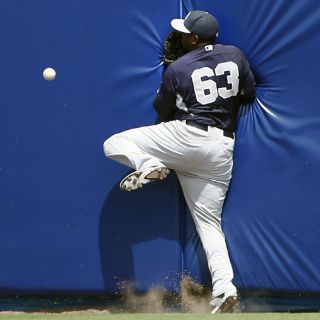 Yankees de Nueva York, sufrió un choque contra el muro de protección del campo mientras su equipo se enfrentaba a los Mets de Nueva York y tuvo que ser retirado del campo en un carrito de golf y ser ingresado en un hospital local con conmoción cerebral.