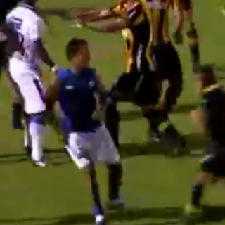 Entonces, Carlos Núñez, del conjunto 'aurinegro', le propinó una grosera patada a Guillermo de los Santos, de Nacional, lo que desató una trifulca que obligó a parar el partido por más de diez minutos y que se saldó en la cancha con cuatro jugadores expulsados.