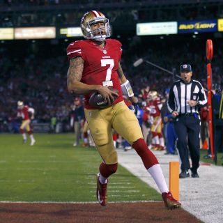 Kaepernick consiguió anotaciones por tierra de 20 y 56 yardas en su paso para superar la marca de 119 yardas que tenía Michael Vick. Crabtree atrapó pases de anotación de 12 y 20 yardas en el segundo cuarto y terminó con nueve recepciones y 119 yardas para los Niners (12-4-1) en el duelo divisional de la Conferencia Nacional.