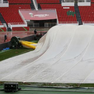 El encuentro disputado anoche entre Cruz Azul y Wanderers Sydney en Rabat, estuvo marcado por las malas condiciones del terreno de juego, anegado por la lluvia. El paso de las horas no mejora su aspecto pese a los intentos del personal, que han cubierto con plástico todo el terreno de juego y aplican aire caliente con dos tubos de grandes dimensiones.