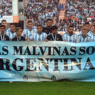 Antes de su triunfo 2-0 sobre Eslovenia el sábado en un amistoso en La Plata, los futbolistas argentinos se pararon detrás de una pancarta con la inscripción: 'Las Malvinas Son argentinas'.