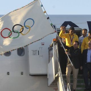 El alcalde de Río, Eduardo Paes, descendió de un avión de Air France cargando la bandera olímpica, acompañado por el presidente del Comité Organizador de los JO-2016, Carlos Arthur Nuzman, el gobernador del estado de Rio, Sergio Cabral, y los atletas brasileños que participaron en los Juegos de Londres.