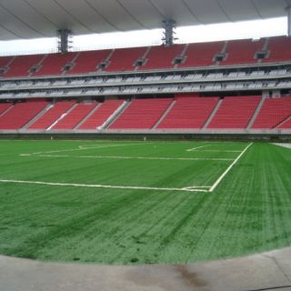 GUADALAJARA, JALISCO (13/JUL/2010).- El nuevo Estadio de Chivas, al que pronto bautizará la dirigencia rojiblanca con el nombre de Movistar, ya luce verde en su totalidad, luego de que fue instalado al cien por ciento el pasto sintético de séptima generación.